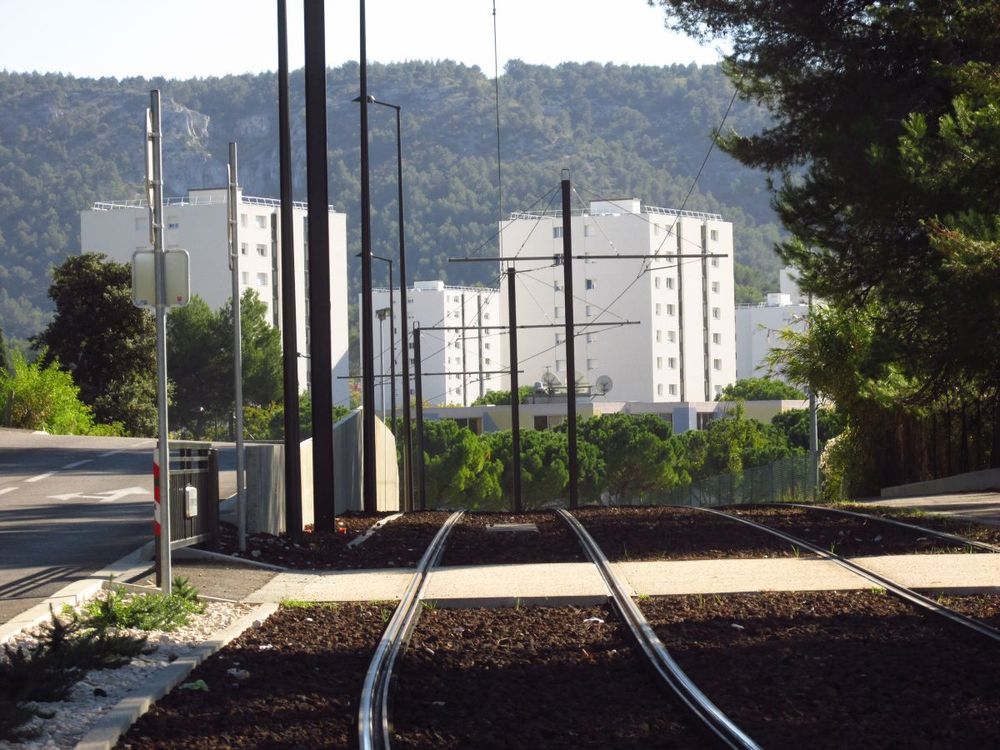 Před posledními dvěma zastávkami se řidiči tramvaje otevře pohled do údolí s rezidenční výstavbou panelových domů, které jsou cílem cest mnoha cestujících. Právě zde, v malém sídlišti Le Charrel, má jediná krátká tramvajová linka svou konečnou zastávku. Tady každý den začíná několik tisíc příběhů a množství každodenních lidských cest za zaměstnáním i zábavou. Díky odvážnému rozhodnutí města Aubagne a možnostem dotačních programů se tyto cesty už více než rok setkávají v tramvaji.