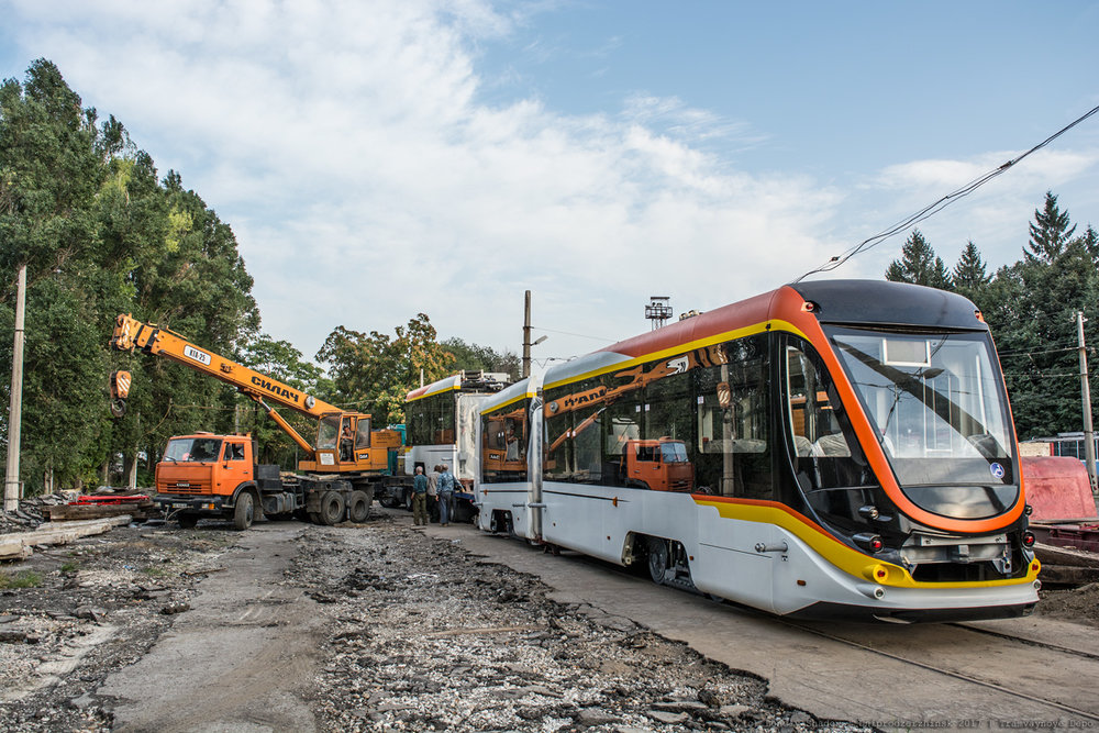 Protože tříčlánková tramvaj dorazila do Kamjanskeho po silnici v rozloženém stavu, musela být v cíli opět sestavována do celistvé podoby, jak ukazují i přiložené snímky. Tramvaj bude nejprve odzkoušena na kolejích místní vozovny a poté vyjede i do ulic města, ve kterém se zdrží podle předpokladů minimálně 10 až 14 dní. Cílem je najet alespoň 1 000 km, a to bez cestujících. Výrobce se zkouškami snaží naplnit předpoklady pro získání státního certifikátu, díky kterému bude moci zahájit sériovou výrobu vozidla. O budoucím zákazníkovi prototypu, jakožto zákaznících případných sériových vozidel, však nejsou zatím žádné zprávy.