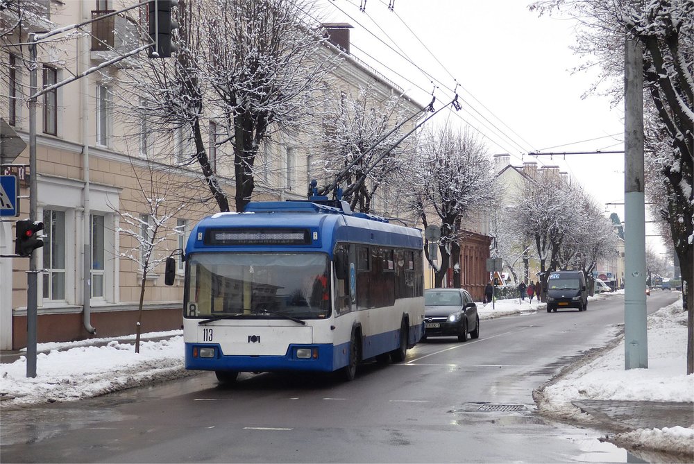 Místní park sestává ze 74 vozů, všechny jsou v provozu a všechny jsou sólo. 65 trolejbusů nese značku Belkommunmaš (jedná se o typy AKSM-221, AKSM-20101, AKSM-321, AKSM-32102, AKSM-32100A) a 9 MAZ-ETON (typ MAZ-ETON T103). Vozy s dieselagregátem jsou typu AKSM-32100A a dodány byly v šesti kusech v letech 2013 a 2014 (ev. č. 146–150, u ev. č. 145 byl agregát demontován). Nejstarší vozidlo je z roku 1999, většina parku je ale mladší 10 let. Vedení místního podniku dbá úzkostlivě na to, aby trolejbusy jezdily v dobrém stavu. Loni v říjnu byla ve vozovně slavnostně zprovozněna nová krytá myčka.