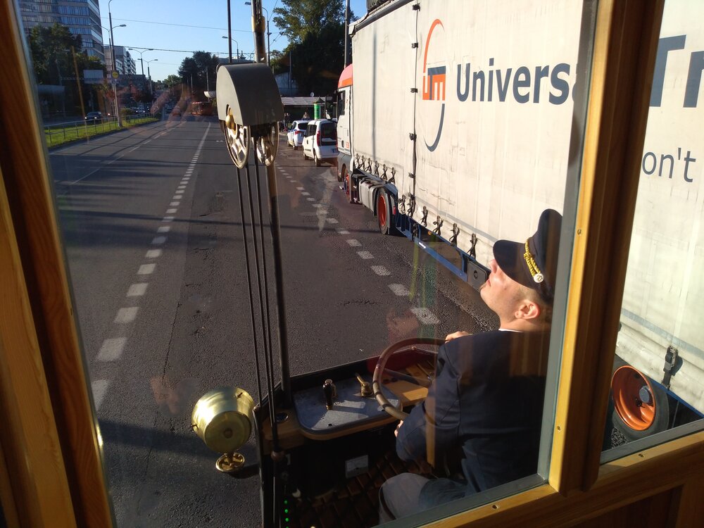 Před čtvrtou hodinou, kdy už Komajota dohrála, se začaly dávat do šiku historické trolejbusy, aby se vypravily v konvoji napříč městem. Pochopitelně ne všechny vozy se mohly přehlídky zúčastnit, některé totiž byly statickými exponáty, nebo nebyly pro dlouhou jízdu zcela připraveny, což byl i případ “Sanosky”, která jela v konvoji symbolicky jen v areálu vozovny. Srocování vozidel u vrátnice trvalo zhruba půl hodiny. Krátce po půl páté odpoledne se vlak necelých deseti trolejbusů vydal na cestu městem. Mělo se jednat o důstojné zakončení pěkného dne, nicméně zcela nepochopitelně se nepovedlo. Řidič prvního trolejbusu si postavil hlavu a s odkazem na drážní předpisy a bezpečnost s trolejbusem pádil přes město, jako by jej čerti hnali, a mínil zastavovat jen pro výstup a ještě tehdy, pokud o to lidé požádali sami. Další dva vozy první devítku sotva stíhaly a zbytek vlaku zůstával roztrhnutý. Naskýtá se pak otázka, nač byl konvoj vůbec organizován a vozy řazeny pracně dle svého stáří, když první vozidlo nečekalo na ostatní ani v místech, kde k tomu byly vhodné podmínky. Je nutné si uvědomit, že byla sobota, a tak by krátké zastavení trolejbusů u krajnice nikoho neobtěžovalo. A hlavně je pak důležité nezapomínat na to, že se akce s konvojem dělala pro lidi, aby si mohli vozidla v klidu na vybraných místech nafotit, pokochat se jejich krásou, případně mezi nimi přestoupit a plně si je vychutnat za jízdy. Tato free ride první “devítky” tedy pokazila zážitek nejen několika cestujícím, ale i těm zaměstnancům DPB, kteří si chtěli konvoj vyfotit v plné kráse na památku. Nicméně je zde i poučení do budoucna, a sice aby konvoj příště vedlo dispečerské vozidlo, které jej bude řídit a případné nepravidelnosti v provozu dirigovat na místě, protože ani výběr nadmíru zkušeného řidiče není zárukou, že vše půjde podle představ.