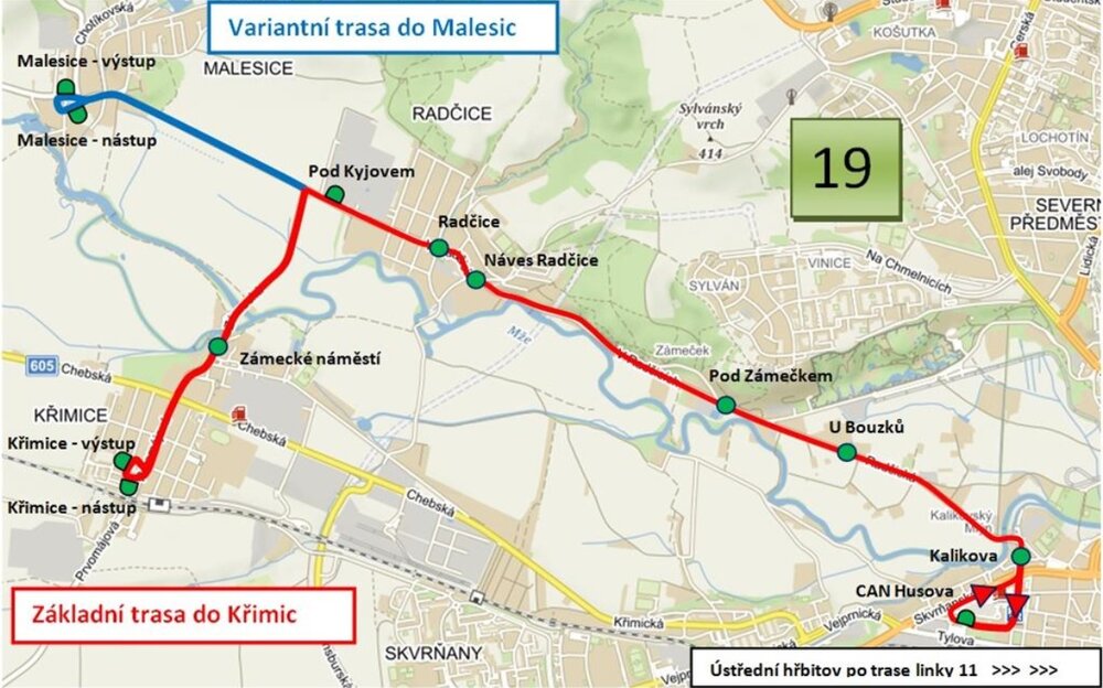 Její spoje jsou vedeny jako vložené, takže k žádnému omezení linek 11 a 35 nedošlo a v případě výpadku parciálního trolejbusu nehrozí (ke kterému ale zatím nedošlo), že by cestující čekali marně na svůj spoj. Trolejbus je navíc na linku v rámci testování nasazen vždy pouze 1 a jezdí v nepravidelném intervalu. Od prosince zde byly testovány plzeňské vozy Škoda 26 Tr s karoserií Solarisu, dne 10. 1. 2020 se poté na lince objevil zkušebně také kloubový trolejbus Škoda 27 Tr (rovněž s karoserií Solarisu). Po prvních zkušenostech v prosinci byl v lednu 2020 mírně jízdní řád upraven, aby byly prodlouženy časy na nabíjení z důvodu krátkého času pro nabíjení u prvních ranních spojů při namrzlém trolejovém vedení. I tak však v případě plzeňské linky číslo 19 klasická poučka poměru 2:1 jízdy pod trolejí k jízdě na baterie neplatí.