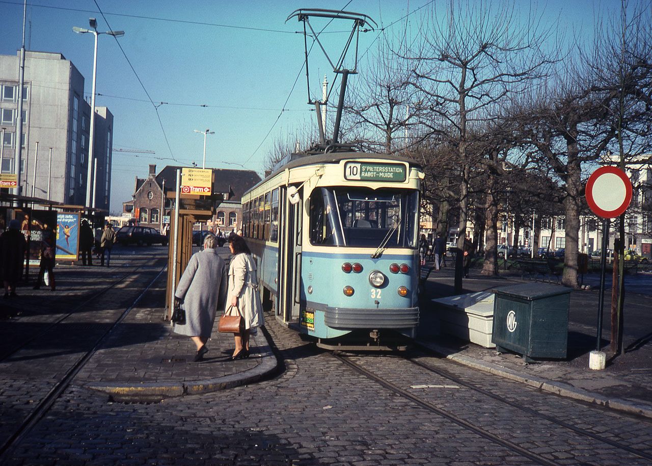 Původní vzhled obousměrných vozů PCC v Gentu na snímku z roku 1982. (zdroj: Wikipedia.nl; autor: Smiley.toerist)