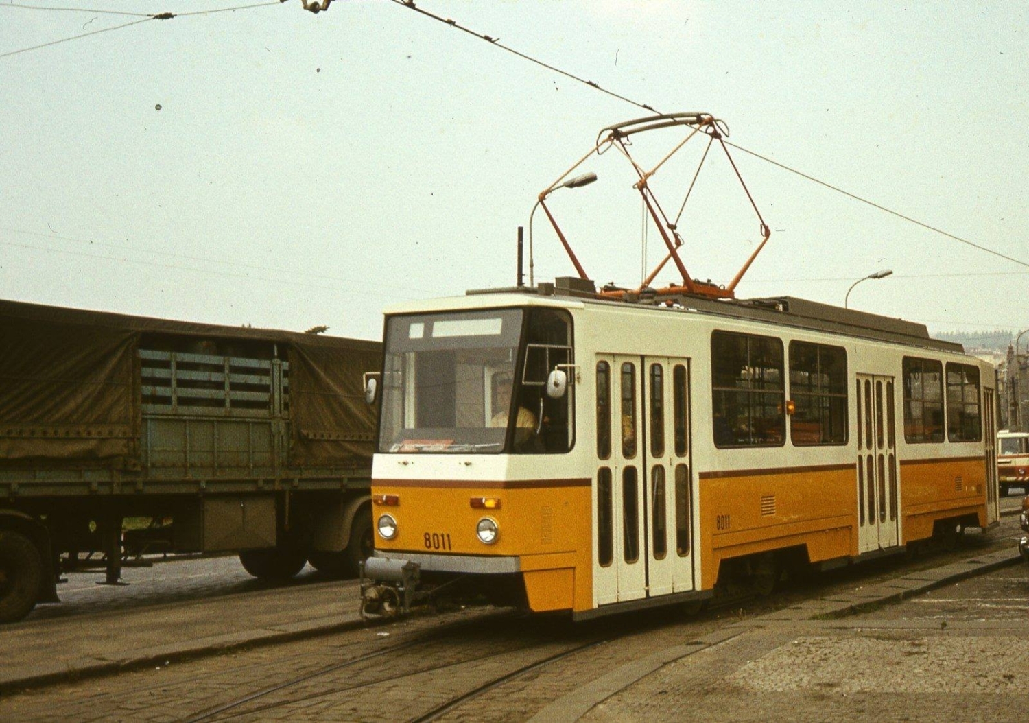 Přetah prototypu tramvaje T5C5 ev. č. 8011 (budoucího budapešťského čísla 4000) z výrobního závodu do vozovny Hloubětín. (foto: ČKD Tatra)