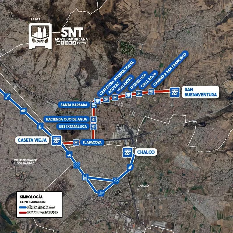 Zajímavé věci se také odehrávají na jihovýchodě hlavního města, respektive jeho tamní periferii. Letos v květnu otevřená meziměstská trolejbusová linka č. 11 (o jednosměrné délce asi 18,5 km) operující na samostatném, částečně nadzemním tělese v trase Santa Martha – Chalco, které se ještě stále nepodařilo plně zatrolejovat, se má dočkat do poloviny roku 2027 nové, 5 km dlouhé větve s celkem 12 zastávkami, jež obslouží téměř 400tisícové město Ixtapaluca, které leží nedaleko Chalca. Stavba této větve, soutěžená od října 2025, byla formálně zahájena 15. prosince 2025 a skončit má 7. června 2027. I pro tuto trasu se objednají desítky nových trolejbusů.
