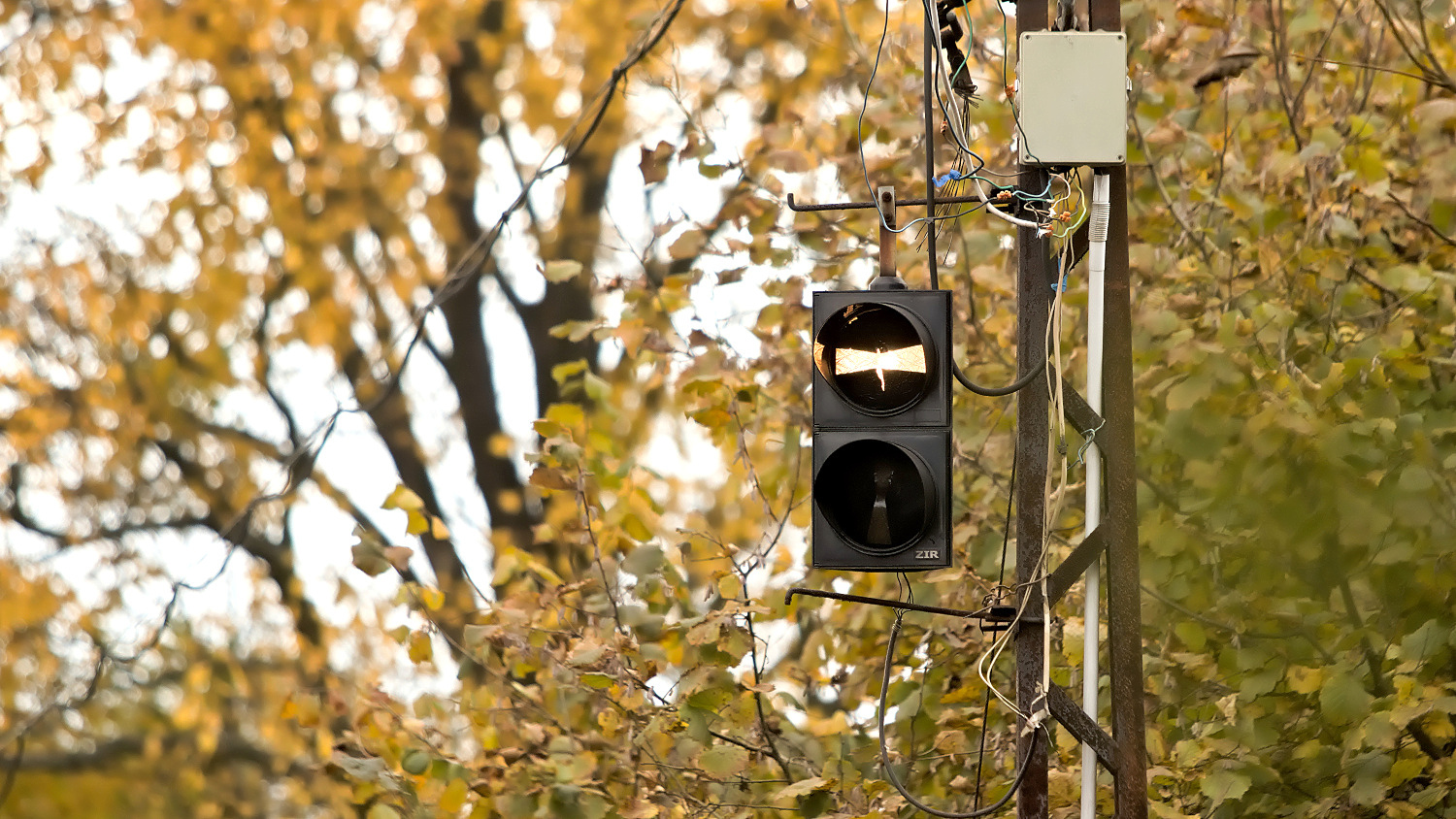 Jednokolejné úseky jsou zabezpečené soustavou návěstidel, ovládaných elektronicky pomocí kontaktních bodů. Jak dokládá snímek z blízkosti zastávky Porąbka Wiejska, i zabezpečovací zařízení má svá nejlepší léta již za sebou. (foto: Tomáš Kowalski)