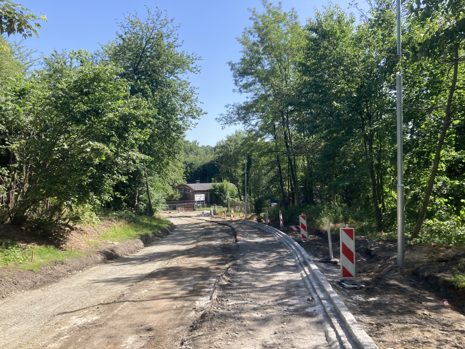 Na snímku z 5. června 2022 vidíme na ulici Na Baranovci KG trubku. Do ní byl ovšem za pár dní zabetonován jen úzký sloup veřejného osvětlení.