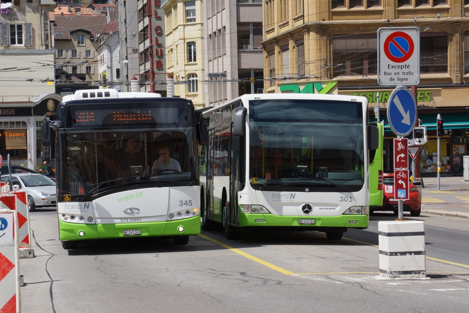 Jako záminka pro zrušení trolejbusů pak posloužila plánovaná přestavba přednádražního prostoru (Place de la Gare), který je centrálním přestupním uzlem. Rekonstrukce tohoto prostranství byla zahrnuta do investičních plánů města na léta 2008 až 2012, a to včetně trolejbusové infrastruktury. V roce 2011 se ovšem začalo vyzdvihovat, že celková finanční zátěž projektu by se dala snížit vyškrtnutím stavby trolejového vedení, čímž by město ušetřilo částku ve výši 2,5 mil. švýcarských franků (tehdy cca 50 mil. Kč). Trolejbusová infrastruktura přitom byla označena již jako účetně odepsaná, stejně jako vozidla (resp. stavu účetního odepsání blížící se). Namísto trolejbusů byly dopravcem TransN doporučeny hybridní autobusy. Ty pak byly již v roce 2012 pořízeny a od října 2012 zařazeny do provozu s tím, že se na linkách v té době ještě prokládaly se zbylými provozními vozy Solaris Trollino.