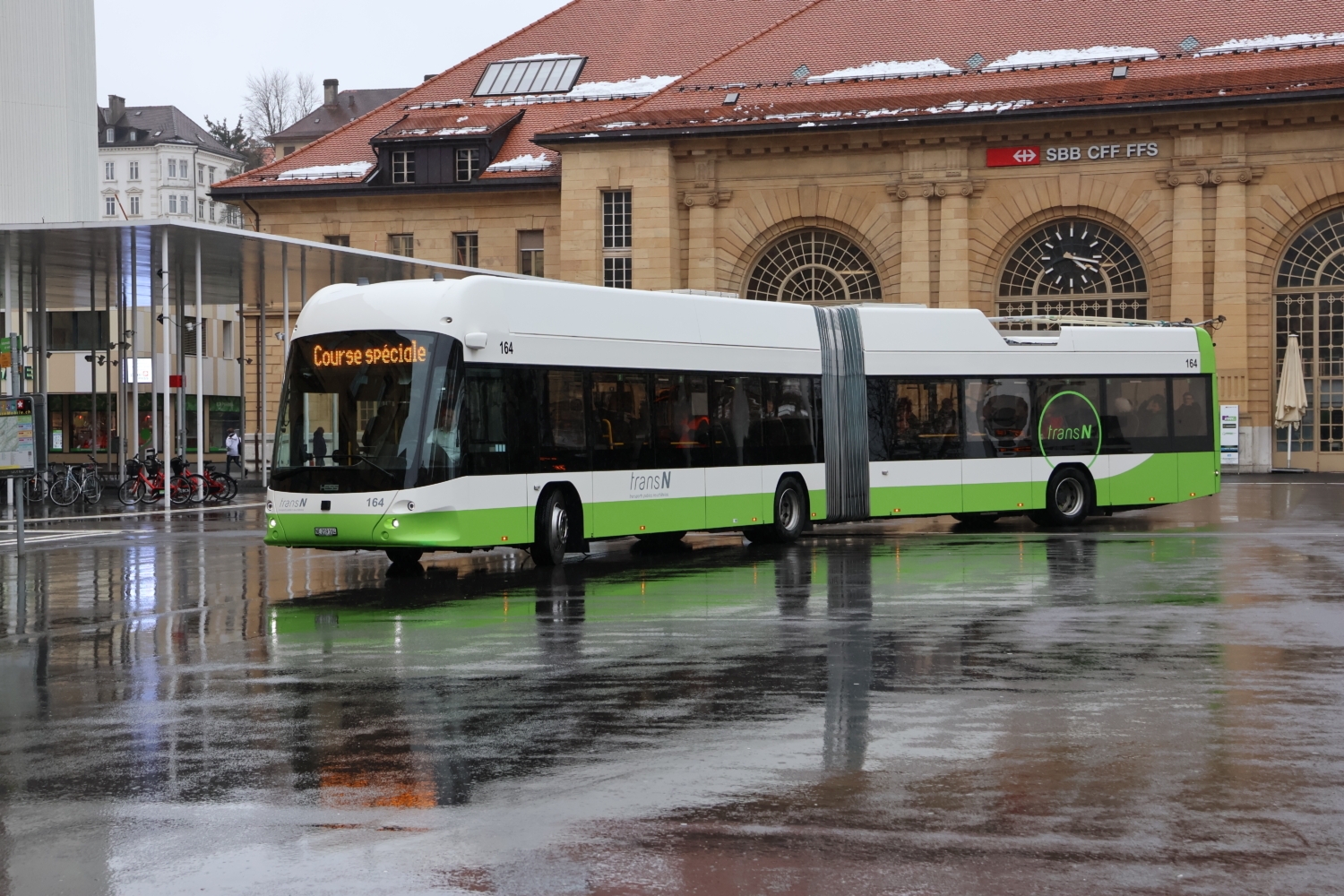 V La Chaux-de-Fonds došlo mezitím k opravám trolejového vedení i napájecí infrastruktury a dne 12. 2. 2024 došlo k obnově dodávky elektrického proudu do sítě, avšak zkoušky nebylo možné – pro absenci repasovaných trolejbusů – zahájit. Harmonogram školení řidičů byl nakonec výrazně posunut a začal až v listopadu 2025, kdy byly do La Chaux-de-Fonds přepraveny trolejbusy ev. č. 161 a 162. Ty pak byly v únoru 2026 odvezeny zase zpět do Neuchâtelu a namísto nich dorazily vozy ev. č. 163 a 164, které se ve městě jako jediné nacházejí i v době psaní tohoto článku.