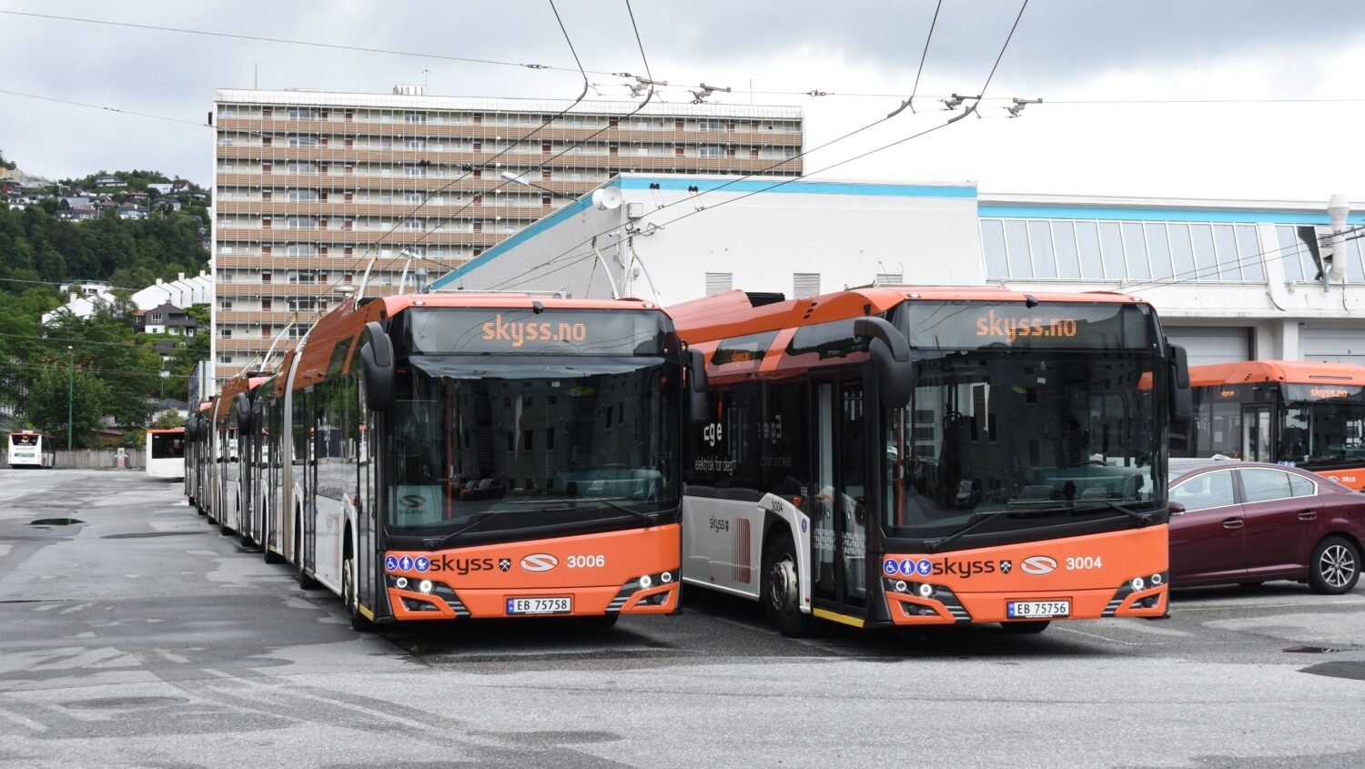Pro obsluhu jediné trolejbusové linky, která na části své trasy využívá trakční baterie, je zapotřebí pouze 10 trolejbusů Solaris Trollino 18 (s elektrickou výzbrojí od Škody Electric), které byly zařazeny do provozu s platností nových smluv od 1. 12. 2020. Společně s deseti trolejbusy ale bylo do provozu zařazeno i 102 elektrobusů z produkce čínského Yutongu (a 26 autobusů na bionaftu), které se ukazují v provozu jako mimořádně spolehlivé. Náklady na jejich provoz se sice mohou jevit jako mírně vyšší v porovnání s trolejbusy (byť přesná kalkulace podle všeho provedena nebyla), nicméně to platí pouze tehdy, pokud se nezapočítávají náklady na údržbu trolejbusové infrastruktury. Poté se má stát v bergenských podmínkách elektrobus jednoznačným vítězem. Právě nutnost vysokých investic do infrastruktury je hlavním motivem ke zrušení trolejbusového provozu.