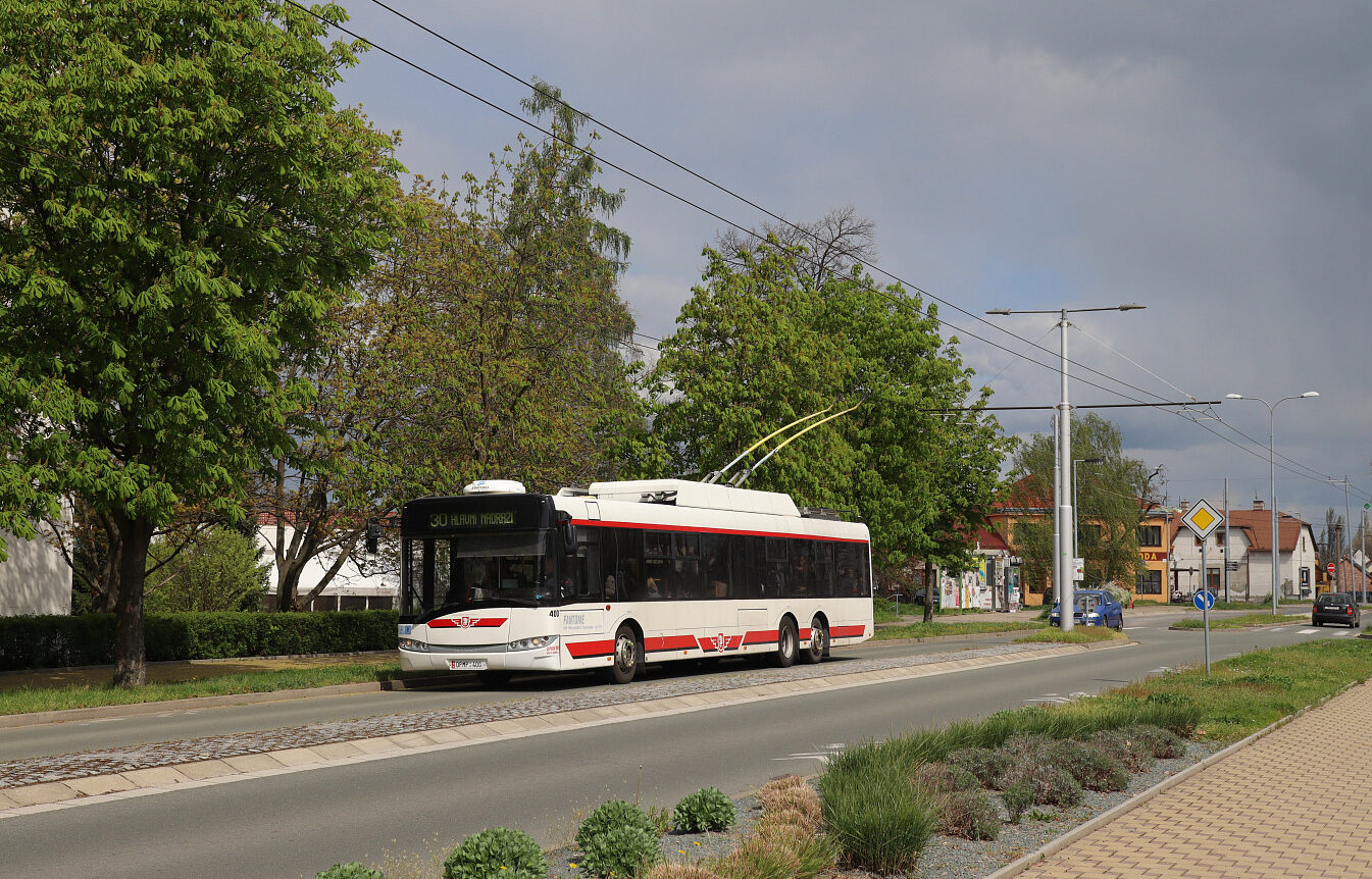 Prototyp trolejbusu Škoda 28 Tr ev. č. 400 byl dokončen jen dva měsíce po podpisu smlouvy. Na snímku jej fotograf zachytil na nové trolejbusové trati (zprovozněna byla v září 2022) k pardubické univerzitě. (foto: Lukáš Novotný)