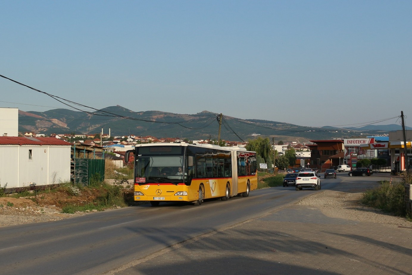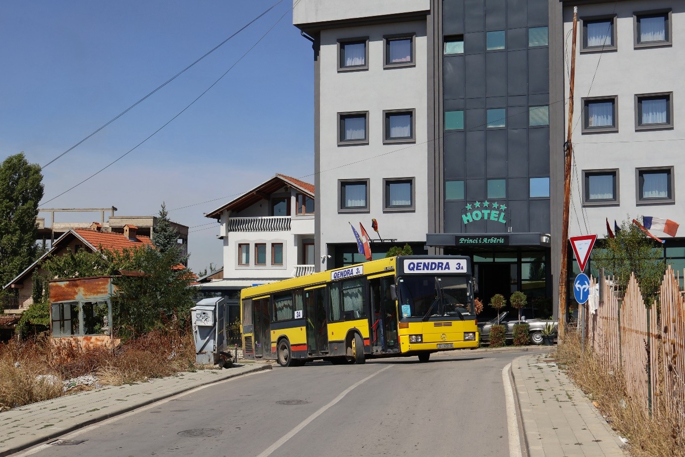 Jeden z vozů O 405 NK, které se nacházejí zejména na lince 3A. Ve městě ale lze potkat i dva vozy se sníženou střechou. V úzkých ulicích Prištiny je často uměním řízení i těchto kratších vozů. (foto: Dominik Konečný)