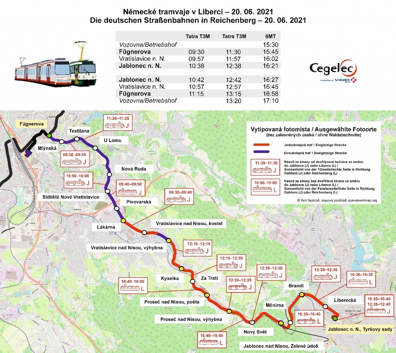 V souvislosti s akcí „Německé tramvaje v Liberci“ vyhlašuje společnost Cegelec ve spolupráci s mediálními partnery soutěž o jízdenky na svezení historickými tramvajemi T3M ev. č. 8106 a soupravou vozu 6MT ev. č. 117 a vlečného vozu „plecháč“ ev. č. 44 v neděli dne 20. 6. 2021 na trase mezi Libercem a Jabloncem (a zpět).
