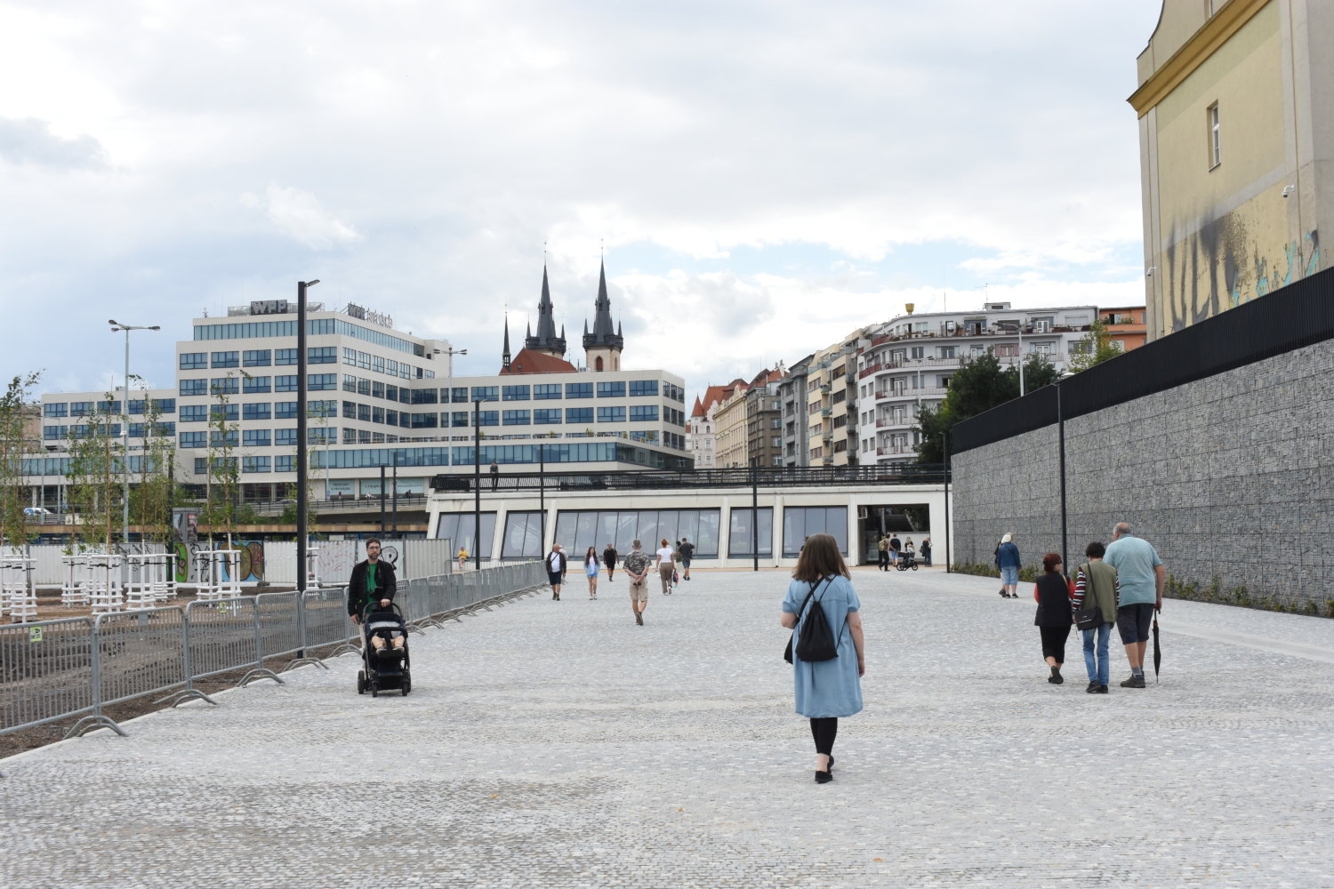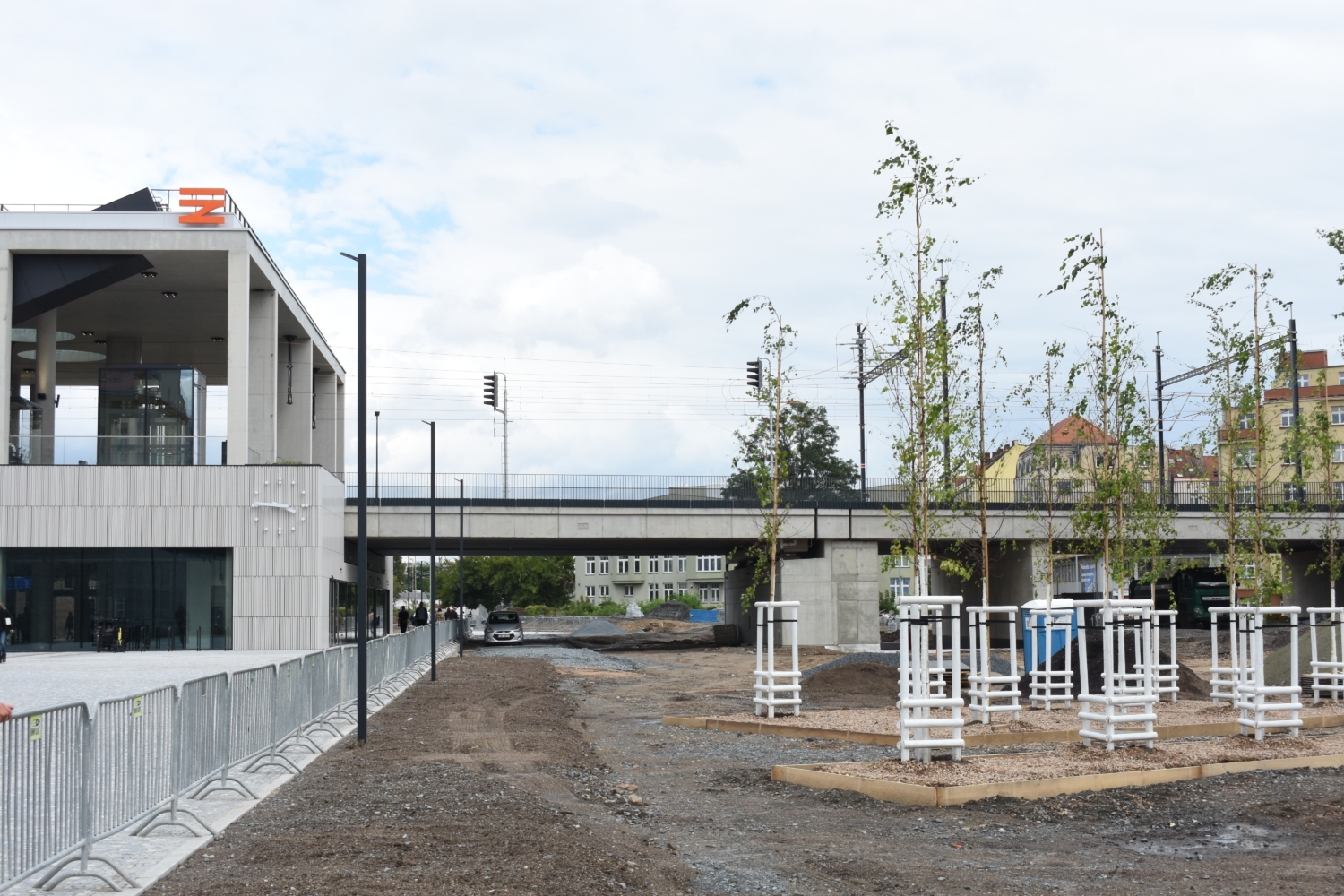 Přeložce tramvajové trati by měl padnout za oběť současný výstup metra, protože tramvajová trať je navržena skrze něj. Výstup z metra by měly být nově o 90° otočen a směřovat přímo k nádraží. (foto: Libor Hinčica)