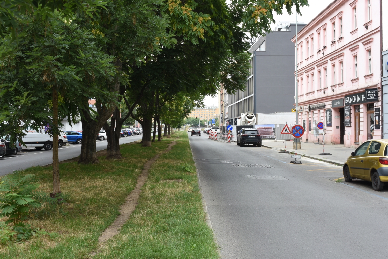 Budoucí těleso tramvajové trati. Nyní vysazené stromy budou muset trati zase ustoupit. (foto: Libor Hinčica)