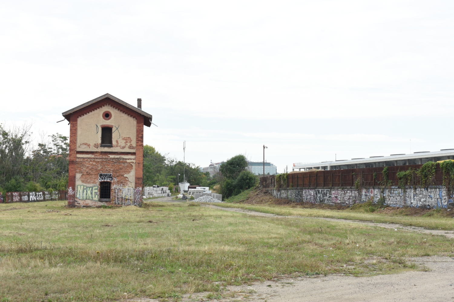 Na území po železničních dílnách zůstala alespoň zachována budova vodárny. Ta by měla být zakomponována do nové zástavby. Tramvajová trať by měla být vedena středem území. Blíže k nádraží je plánován park, na opačné straně nová zástavba. (foto: Libor Hinčica)