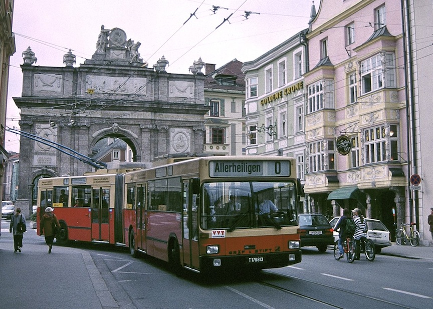 Připomeňme, že trolejbusy v Innsbrucku v minulosti již dvakrát jezdily. První období se datuje mezi roky 1944 až 1976, druhé pak do období let 1988 až 2007. Zatímco při první likvidaci se Innsbruck svezl na tehdejší vlně útlumu trolejbusové dopravy v západní Evropě, ta druhá souvisela se záměrem výstavby nových tramvajových tratí, které měly z větší části kopírovat jediné dvě existující trolejbusové linky. V případě linky s písemným označením O se záměr prakticky bezezbytku povedl, v případě druhé linky R ale tramvaje nahradily jen část a autobusy, které pod stejným označením trolejbusy nahradily, dnes jezdí ve špičkovém intervalu 7,5 minuty a linka patří nadále mezi nejvíce vytížené ve městě.