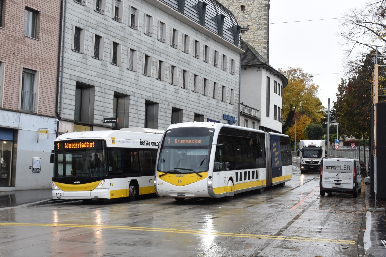 Výběrové řízení na dodání nových elektrobusů bylo vypsáno v květnu 2019 a uzavřeno o necelý rok později. Jejich dodavatelem byla vybrána společnost Irizar, která nabídla svůj tehdy nový model ie tram s futuristickým designem. Předmětem první etapy mělo být celkem 15 vozidel, z toho 8 článkových a 7 o délce 12 m. Předsériové kusy se objevily na zkouškách již v srpnu 2020, samotné dodávky byly zahájeny o rok později. Mezitím (17. 11. 2020) uspořádalo město ještě dobrovolně referendum mezi občany, kteří měli teoreticky možnost projekt v hodnotě 23,6 mil. franků (zhruba 613,6 mil. Kč) zvrátit. Hlasování se účastnilo přes 12 000 obyvatel (60,73 % oprávněných voličů), kteří záměr podpořili 53,98 % (6 934) hlasů. Nasazení do ostrého provozu je datováno k 21. 9. 2021, kdy bylo vypraveno prvních 8 vozů (7 článkových a jeden sólo; nicméně již od července 2021 byly nasazovány v rámci ověřování a zkoušek první dodané kusy).