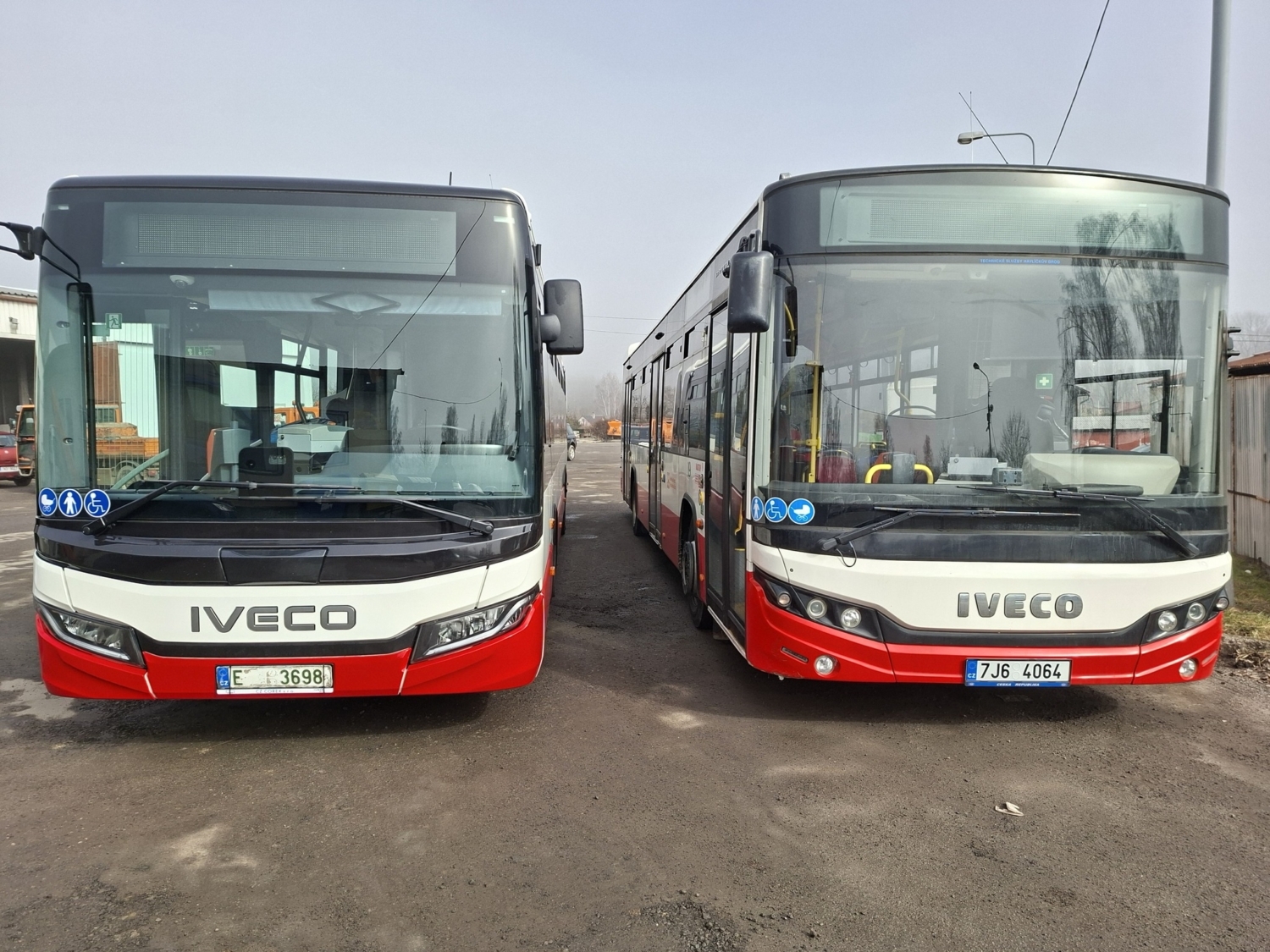 Nově dodaný autobus Iveco Urbanway 12M s faceliftem vedle jednoho z dříve dodaných Streetwayů. (zdroj: TSHB)