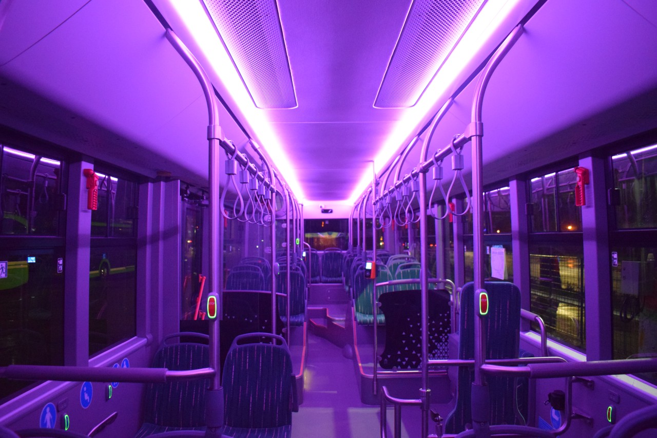 Interiér může být osvětlen v celkem čtyřech barevných odstínech – tradiční žlutou a bílou doplňuje ještě fialová a tyrkysová. (obě fota: Victor Silaghi)