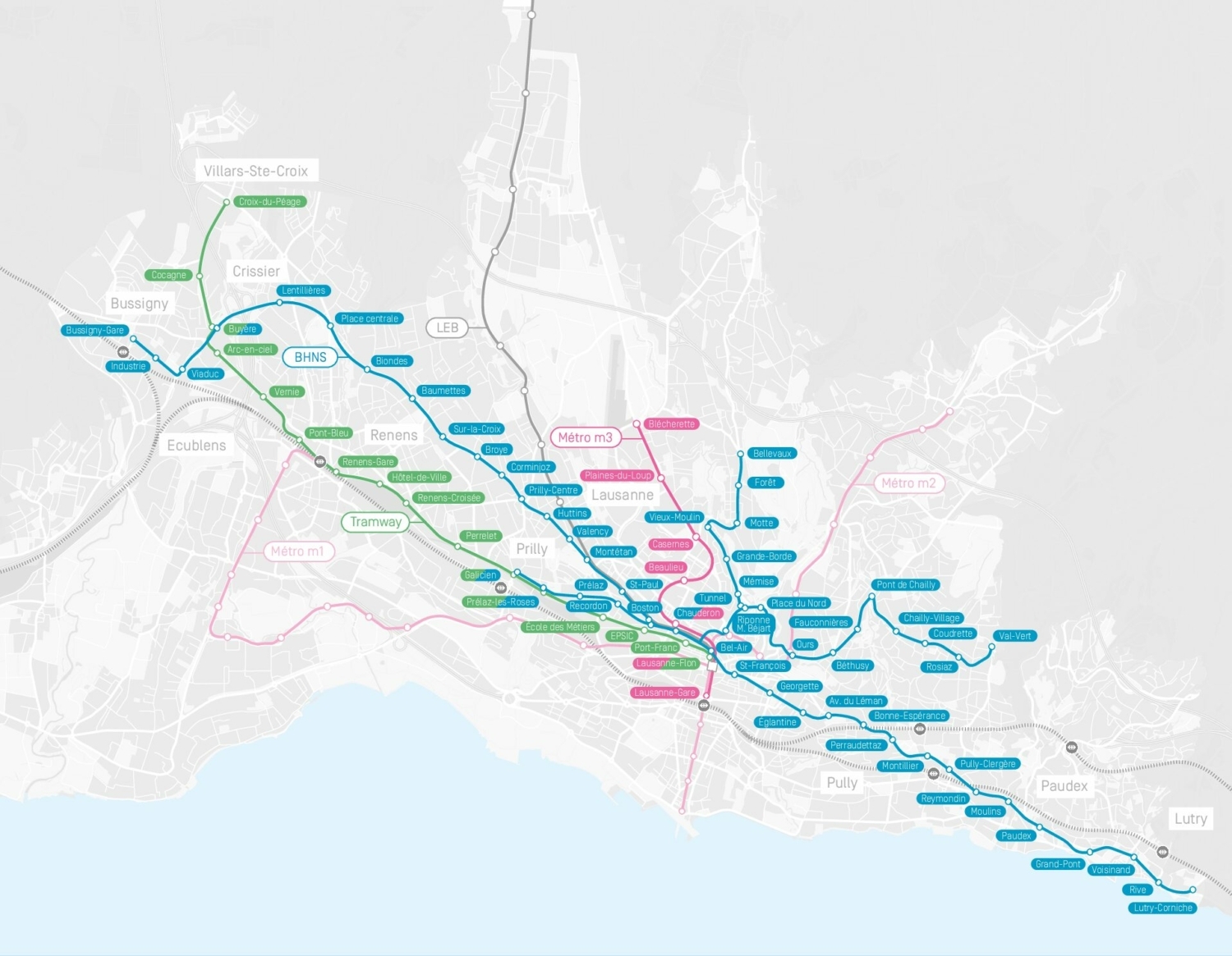 Na nové metrobusové lince, která má být zprovozněna v roce 2025, má být nejkratší interval od pondělí do soboty 7 a půl minuty, v neděli má být delší. Nasazována mají být tříčlánková vozidla. Lausanne zatím provozuje 12 ks typu lighTram 25 DC od Hessu dodaných v letech 2020 a 2021. Původně Lausanne chtělo první BRT koridor otevírat už v roce 2020, nakonec své plány z různých důvodů posunulo. Stavba dalších dvou BRT koridorů je ještě nadále v přípravě, počítá se s tím, že jako druhý přijde na řadu ten nejdelší směřující z konečné Pully, Val-Vert, do Bussigny.