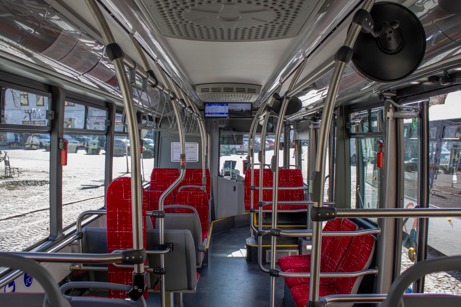 Pohledy do interiéru rychnovského elektrobusu SOR EBN 11(,1) pro Rychnov nad Kněžnou. (obě fota: Štěpán Šrajer)